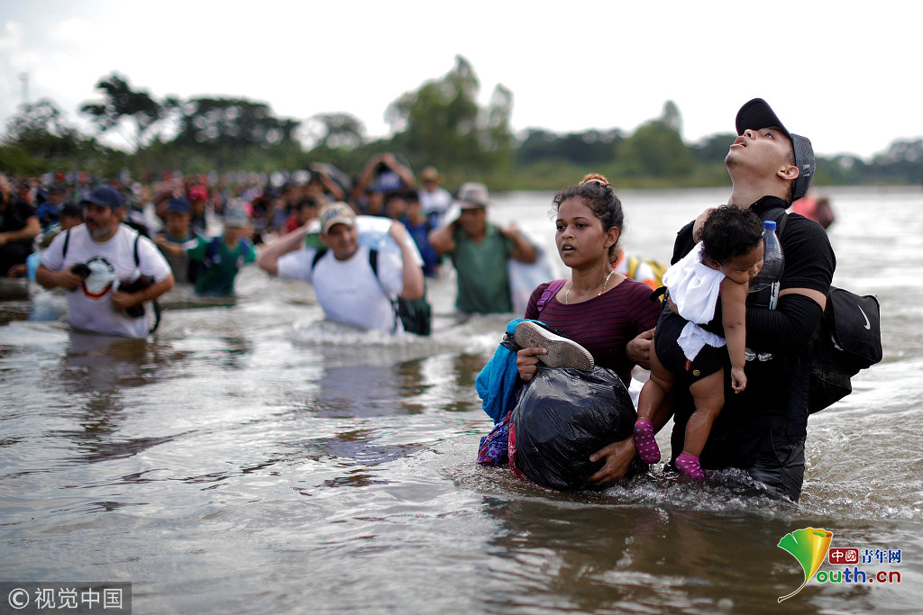 當(dāng)?shù)貢r(shí)間2018年11月2日,墨西哥與危地馬拉邊界,中美洲移民繼續(xù)向美國(guó)挺進(jìn)。圖片作者:UESLEI MARCELINO
