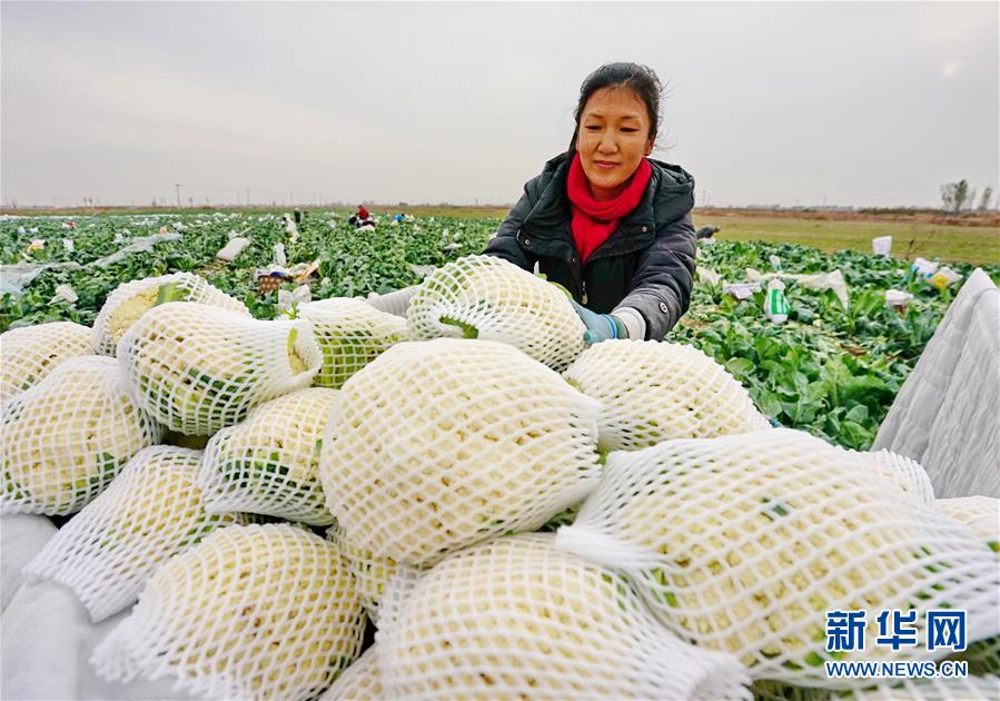 11月5日,唐山海港經(jīng)濟開發(fā)區(qū)王灘鎮(zhèn)東高各莊村的菜農(nóng)在收獲菜花。