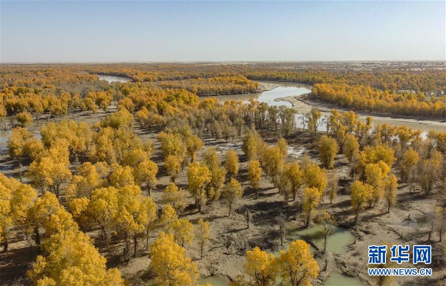 10月中旬以來,新疆天山以南的塔里木河流域胡楊葉片由綠變黃,如同披上了金色外套。 2000年起,塔里木河19次向下游生態(tài)輸水,累計下泄生態(tài)水76.2億立方米。多年的持續(xù)輸水結(jié)束了塔里木河下游河道連續(xù)斷流30年的歷史,緩解了流域生態(tài)退化的被動局面,塔里木河下游動植物物種顯著增加、水環(huán)境得到有效改善。