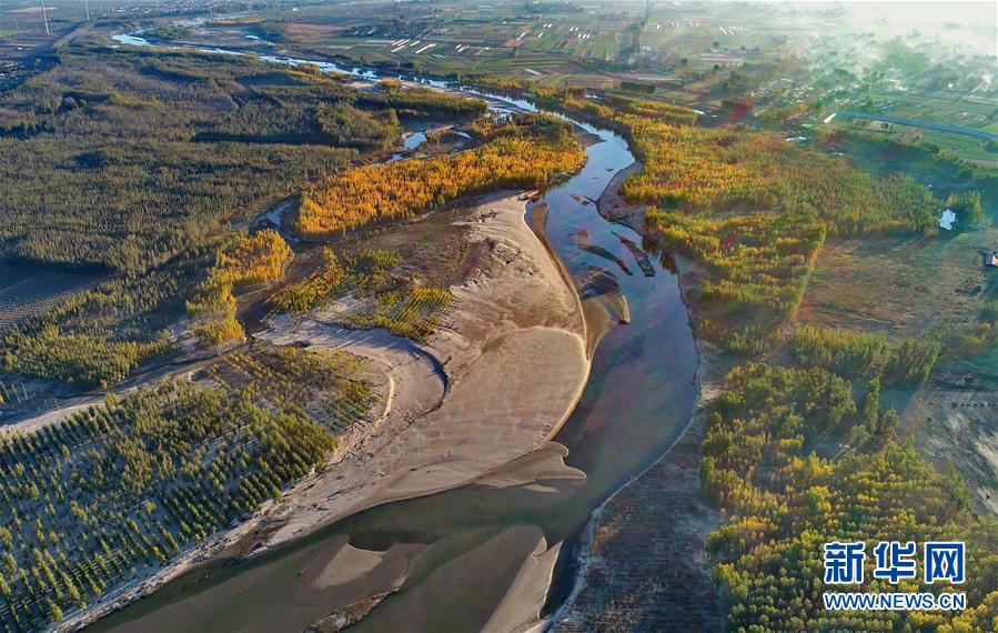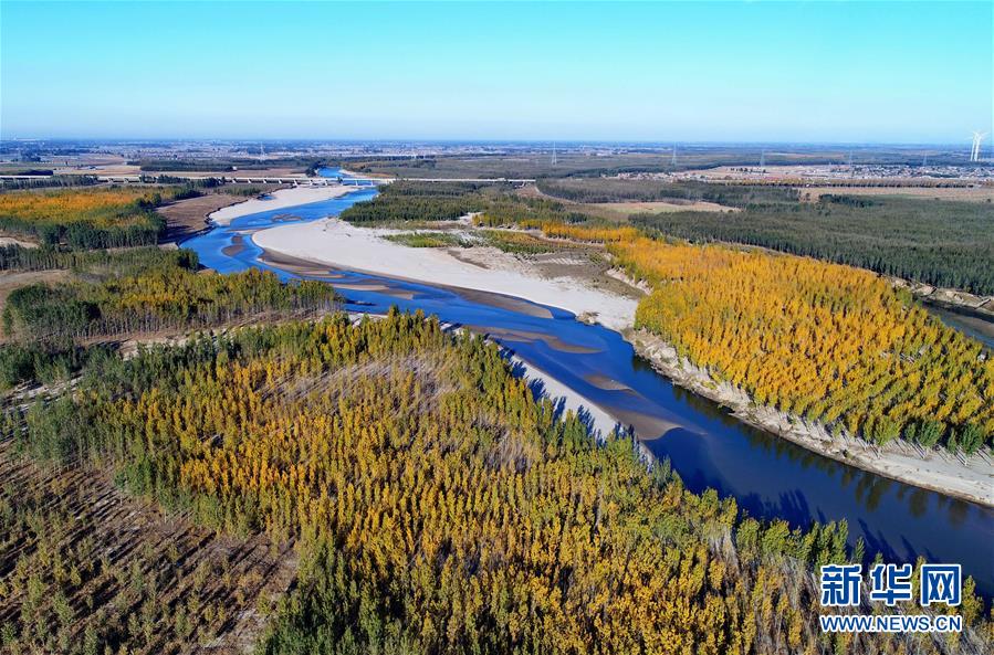深秋時節(jié),流經(jīng)河北省樂亭縣的灤河兩岸色彩斑斕,宛如畫境。