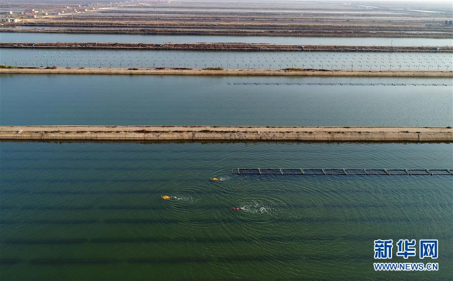 10月22日,樂亭縣姜各莊鎮(zhèn)二節(jié)村海參養(yǎng)殖基地的工人在捕撈海參(無人機(jī)拍攝)。 時(shí)下,正值渤海灣地區(qū)海參收獲時(shí)節(jié),河北省樂亭縣的海參養(yǎng)殖戶忙著捕撈海參,供應(yīng)各地市場。據(jù)介紹,該縣海域水質(zhì)優(yōu)良、氣候適宜,是海參養(yǎng)殖的理想場地,目前發(fā)展池塘造礁養(yǎng)殖海參面積6萬畝,年產(chǎn)鮮活海參6000多噸,年產(chǎn)值2億多元。  新華社記者 楊世堯 攝