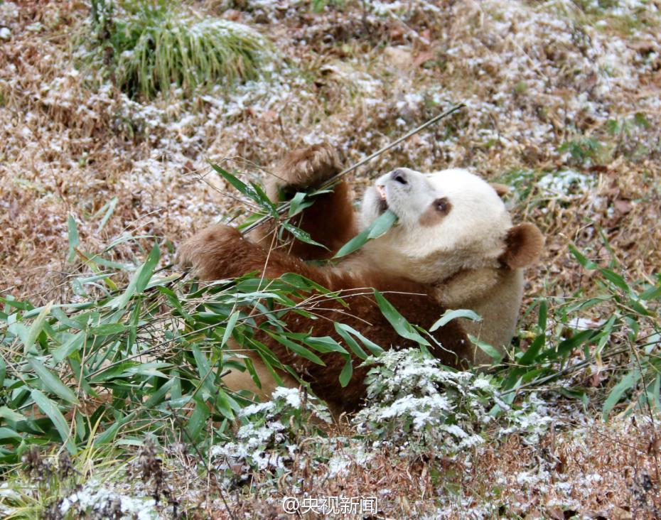 秦嶺大熊貓野化培訓佛坪基地,7歲的棕色大熊貓七仔是目前全世界唯一能看到的棕色大熊貓活體。今年是它在基地過的第二個冬天,每逢下雪,七仔就興奮地滿園子跑,變身“雪花熊”。央視記者李志 王志杰 圖片來源:央視新聞官方微博