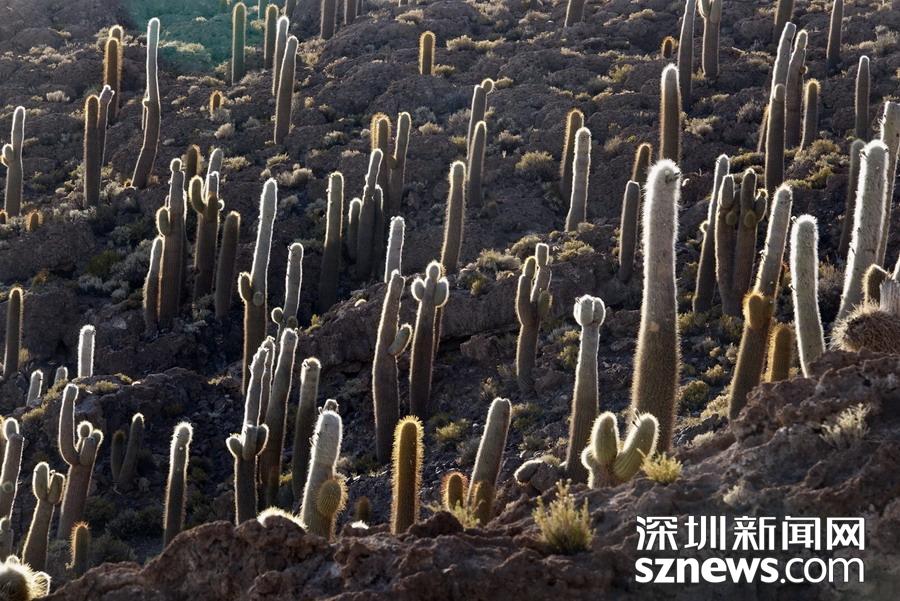 深圳新聞網訊 烏尤尼鹽沼中,有一個孤立的小山頭,猶如瀚海中的小島。島上長滿巨大的仙人柱,據(jù)說有的已經生長了上千年。這種形狀各異、耐鹽堿、耐干旱的熱帶植物豐富了鹽沼的風光,構成絕無僅有的世界奇觀。 李仁奇 攝