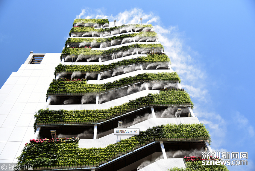相關(guān)鏈接 10層高樓長滿綠植“仙氣飄飄” 這座建筑在抖音火了! 深圳新聞網(wǎng)訊 2018年6月10日,西安,高樓外長滿綠植,還縈繞著霧氣。這段只有6秒的短視頻在抖音火了,網(wǎng)友評論這是“第四代住房”,其實這是西安市眾創(chuàng)示范街區(qū)的一處安裝了智能霧森系統(tǒng)的西北最大戶外垂直綠化。 夏天能區(qū)域降溫5℃至10℃ 還可有效抑制PM10 “仙氣飄飄”、“西安天氣有多熱,房子都冒煙了”,這是一段抖音小視頻里網(wǎng)友的評論留言。視頻中一棟10層高的樓外側(cè)樓梯處掛滿了綠植,同時綠植上方還有噴霧。藍藍的天空當(dāng)做背景,引來不少人上前拍照,配著背景音樂的確讓人感覺清涼無比。
