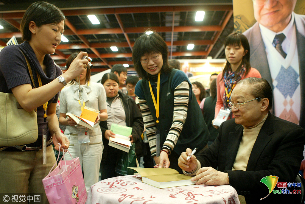2007年2月2日上午,臺灣,武俠小說大師金庸現(xiàn)身臺北國際書展為書迷簽名,許多讀者除了拿小說來簽名外,還帶著相機來拍照。圖片作者:聯(lián)合知識庫