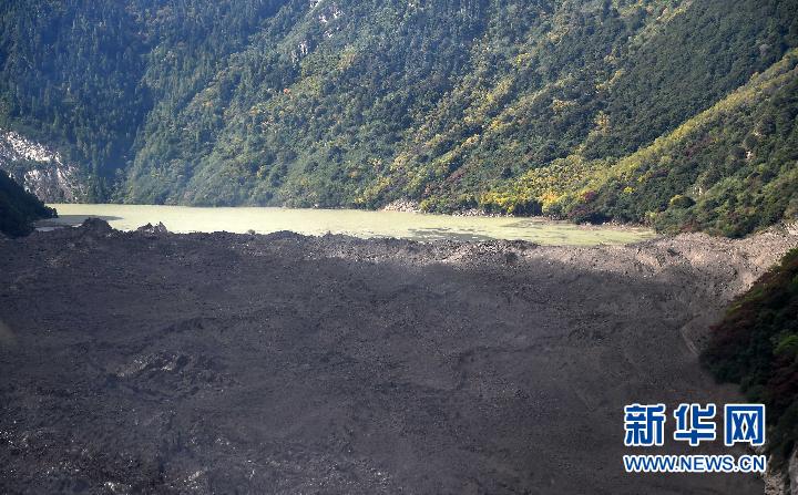 雅魯藏布江上的堰塞湖和堰塞體(10月18日攝)。 新華社記者 覺果攝
