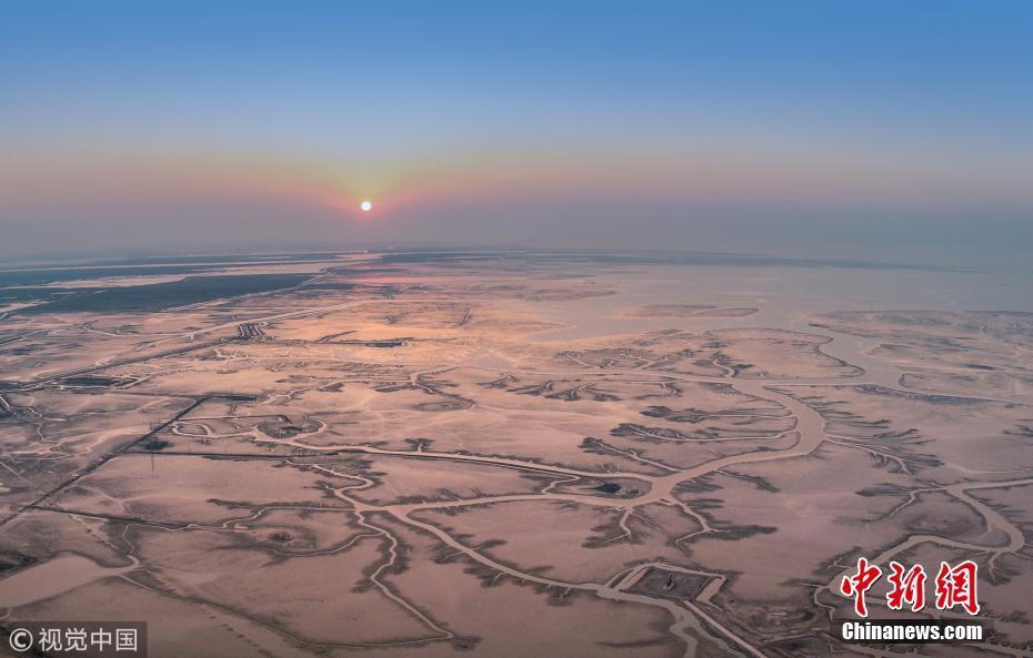 10月3日,山東東營,航拍黃河三角洲國家級自然保護區(qū)內(nèi)壯觀的河流脈絡。圖片來源:視覺中國