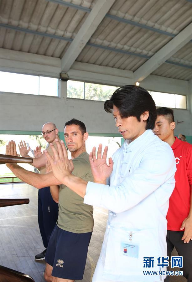 11月13日,在馬耳他首都瓦萊塔,鄭祖杰(前右)向馬耳他士兵展示詠春拳。 當日,中國國家級非物質(zhì)文化遺產(chǎn)詠春拳代表性傳承人鄭祖杰走進馬耳他武裝部隊,向官兵展示詠春拳。這一活動是馬耳他中國文化中心與馬耳他武術(shù)協(xié)會合辦的詠春拳系列展示活動之一。 新華社記者 袁韻 攝