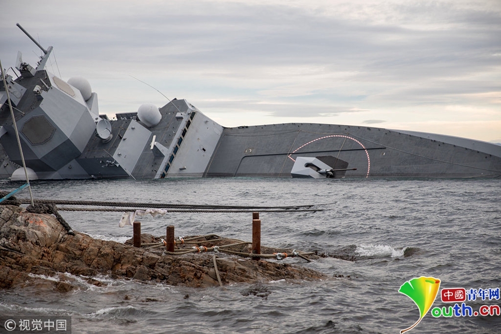 挪威:被撞翻的海軍護衛(wèi)艦打撈出水