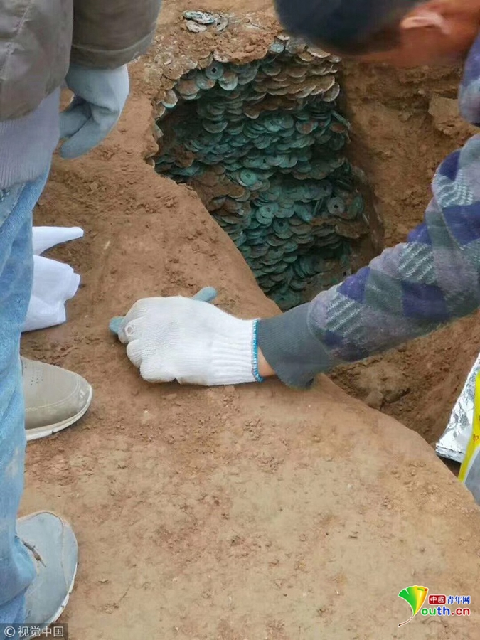 經(jīng)過(guò)發(fā)掘清理,古幣中最早的是唐開(kāi)元年間的,最晚的為南宋時(shí)期,絕大多數(shù)都是北宋時(shí)期的錢(qián)幣。白水縣文物管理委員會(huì)主任趙張鋒介紹,這些古幣數(shù)量比較大,一般個(gè)人很少持有如此多的錢(qián)幣,初步分析可能是當(dāng)時(shí)一個(gè)錢(qián)莊存放的錢(qián)幣,有可能當(dāng)時(shí)遇到戰(zhàn)亂,匆忙之下進(jìn)行埋藏,但后來(lái)再無(wú)機(jī)會(huì)挖出。