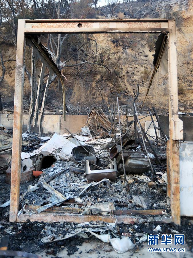 這是11月10日在美國(guó)加利福尼亞州馬里布市拍攝的一處被燒毀的廢墟。連日來,美國(guó)加利福尼亞州野火肆虐。 新華社記者李穎攝