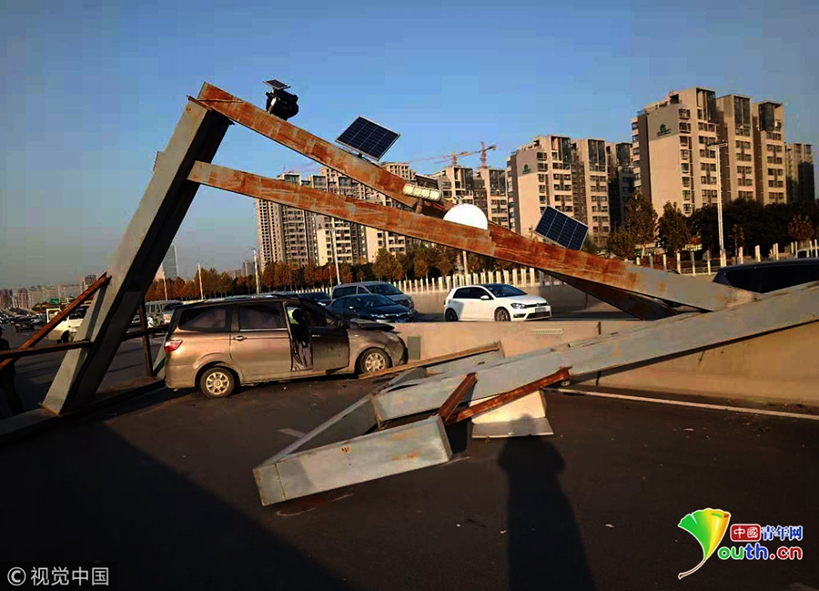 快速路司機(jī)開(kāi)車“走神” 眨眼撞塌限高桿