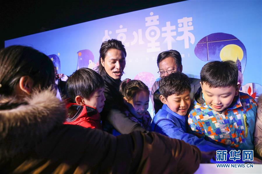 11月20日,在北京舉行的世界兒童日主題活動(dòng)上,聯(lián)合國(guó)兒童基金會(huì)大使陳坤與孩子們共同點(diǎn)亮國(guó)家游泳中心。 新華社記者張玉薇攝