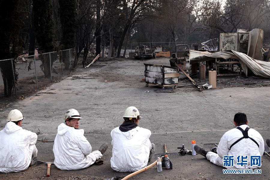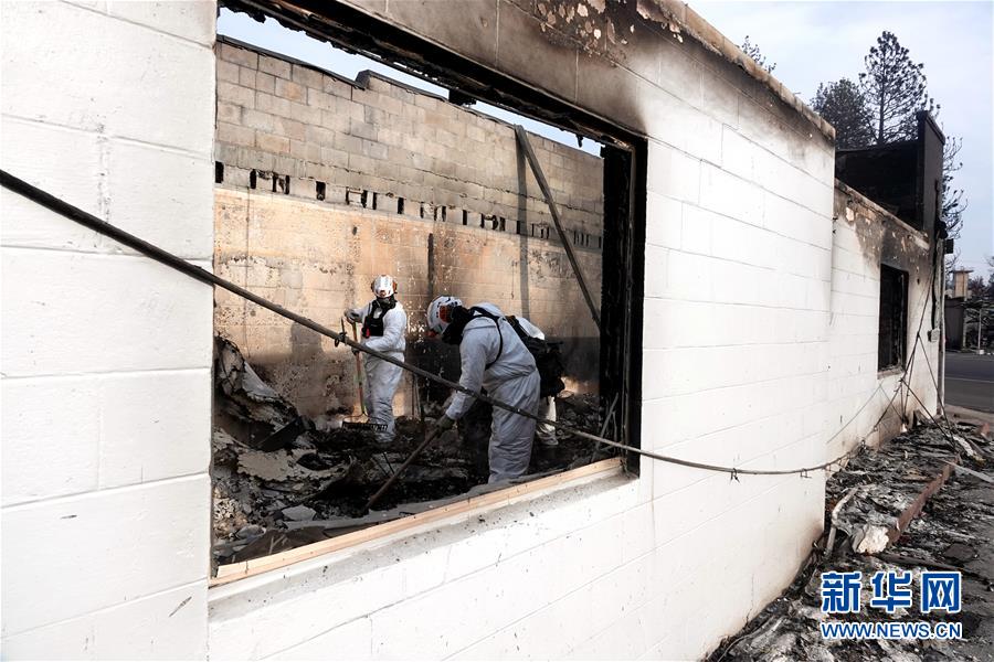 11月20日,在美國(guó)加利福尼亞州比尤特縣天堂鎮(zhèn),救援人員在災(zāi)區(qū)工作。