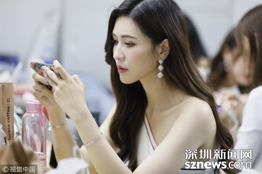 2018年11月16日,廣州,第十六屆中國(guó)(廣州)國(guó)際汽車(chē)展覽會(huì)媒體日。模特候場(chǎng)表演間隙,陳宏偉玩手機(jī)游戲
