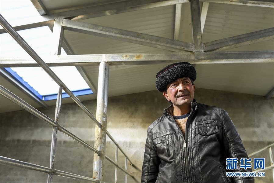 在塔什庫爾干塔吉克自治縣塔提庫力易地扶貧搬遷安置點,都熱·加爾曼在新修的標(biāo)準(zhǔn)化棚圈內(nèi)參觀(11月18日攝)。新華社記者胡虎虎攝