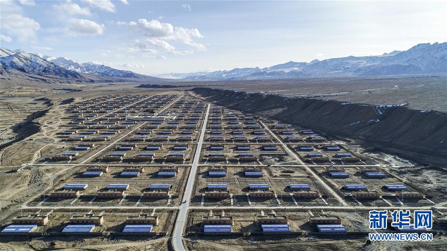 這是塔什庫(kù)爾干塔吉克自治縣塔提庫(kù)力易地扶貧搬遷安置點(diǎn)(11月19日無(wú)人機(jī)拍攝)。新華社記者胡虎虎攝