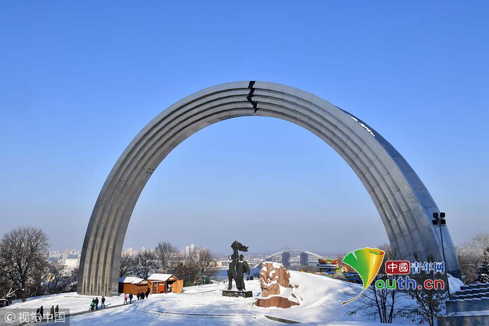 當(dāng)?shù)貢r(shí)間2018年12月2日,烏克蘭基輔,蘇聯(lián)時(shí)期象征著烏克蘭和俄羅斯友誼拱形建筑被不知名藝術(shù)家添加了一道裂縫。俄烏黑海沖突后,緊張局勢升級,烏克蘭總統(tǒng)波羅申科于26日簽署戒嚴(yán)令。按照國家安全與國防委員會(huì)的決定,宣布批準(zhǔn)烏克蘭全國實(shí)施戰(zhàn)時(shí)狀態(tài)。