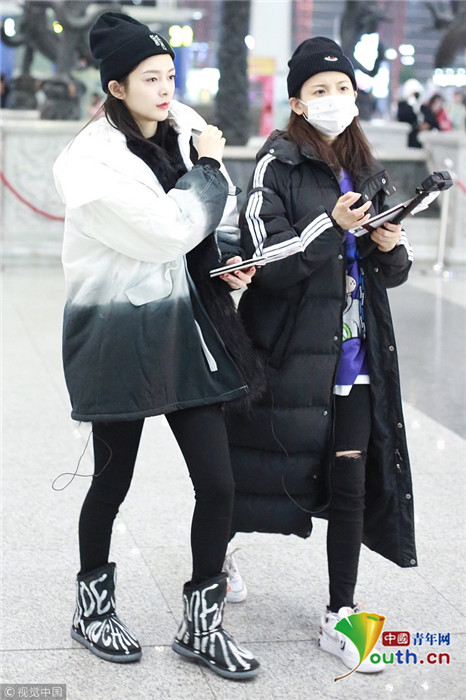 2018年12月3日,北京,“火箭少女101”全體成員現(xiàn)身機(jī)場前往國外錄制團(tuán)總綜。其中孟美岐戴著墨鏡,一身全黑運(yùn)動裝扮,大步流星氣場超強(qiáng),楊蕓晴、yamy、楊超越等成員緊隨其后,大家還一起在機(jī)場玩起自拍,好不歡樂。