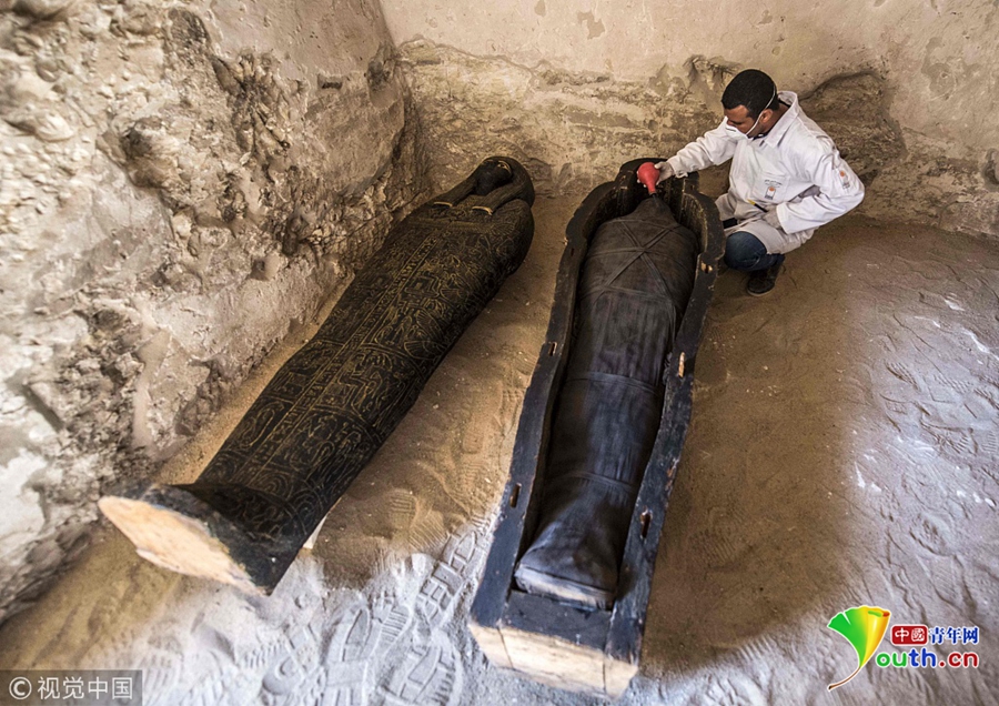 當?shù)貢r間2018年11月24日,埃及盧克索,考古學家在當?shù)匕l(fā)掘出一處墓穴,在其中發(fā)現(xiàn)石棺、木乃伊等文物,時間可追溯至公元前4-7世紀。