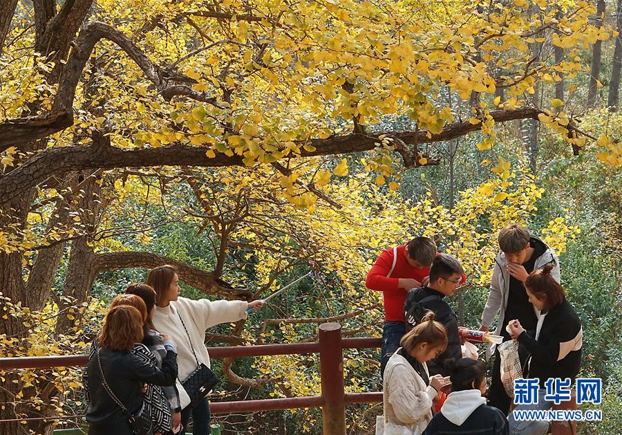 11月1日,游客在河南省嵩縣白河鄉(xiāng)下寺村古銀杏樹下拍照。 深秋時(shí)節(jié),河南省嵩縣白河鄉(xiāng)下寺村的古銀杏林為小山村披上了“金甲”。漫天黃葉,遍地金色,一幢幢民居掩映在色彩斑斕的世界里,美不勝收,吸引了眾多游客賞景拍照。 新華社記者 李安 攝