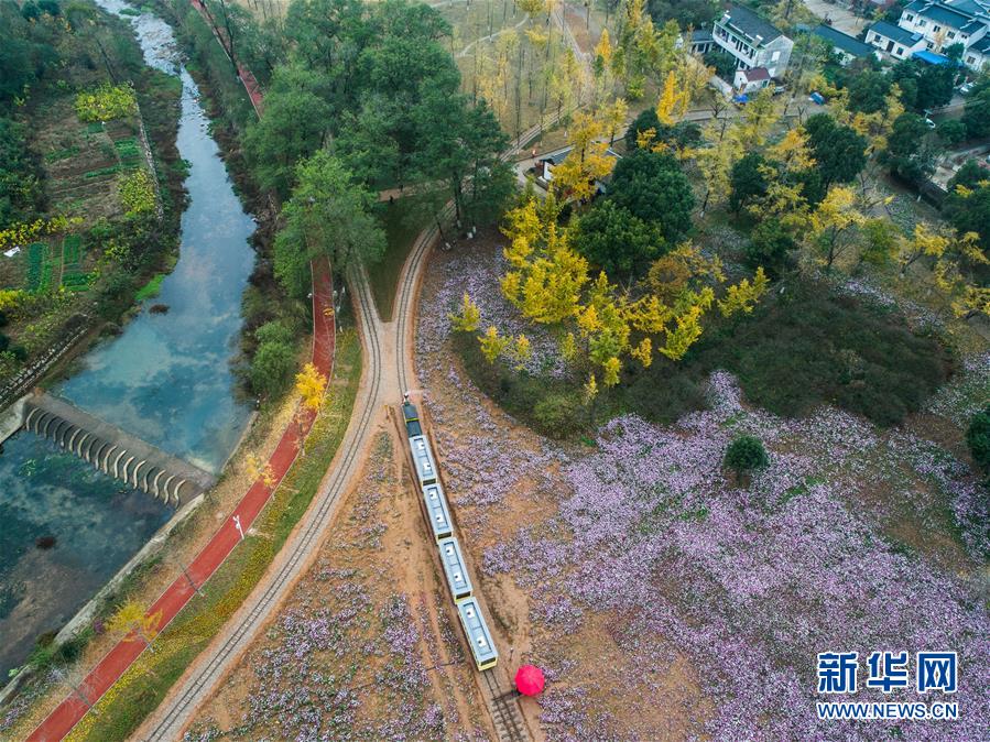 一列觀光小火車帶著游客穿行在銀杏林和花海之間(11月16日無人機(jī)拍攝)。近日,在浙江省長興縣小浦鎮(zhèn),“十里銀杏長廊”和近千畝花海經(jīng)過近一年的升級改造后,以嶄新的面貌與游客見面。花海、觀光小火車、古村民宿、銀杏長廊等旅游項(xiàng)目全面提升了小浦鎮(zhèn)鄉(xiāng)村旅游的品質(zhì)。新華社記者 徐昱 攝