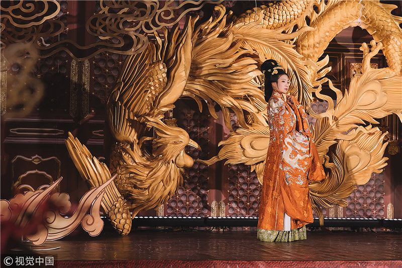 2018年11月18日,浙江嘉興。海寧一位女孩為了籌辦自己的漢婚大禮,囤衣服、囤首飾,準(zhǔn)備整整六年。圖為婚禮現(xiàn)場(chǎng)。周建仕/視覺中國(guó)