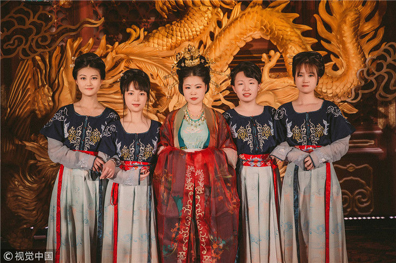 新郎趙佳瑞是嘉興人,今年28歲,比黃聰小兩歲,是一位攝影師。因?yàn)樵?jīng)給黃聰拍攝漢服,他知道她有很多漢服,就經(jīng)常向她借漢服給客人拍攝,經(jīng)常接觸就相戀了。現(xiàn)在夫妻倆在當(dāng)?shù)亻_了專門拍攝古風(fēng)的攝影工作室。工作室就三個(gè)人,除了小夫妻,還有黃聰?shù)拈|蜜楊曉晨做化妝師。在婚禮上,這些小姐妹都穿上漢服,像一個(gè)個(gè)漂亮的宮女。