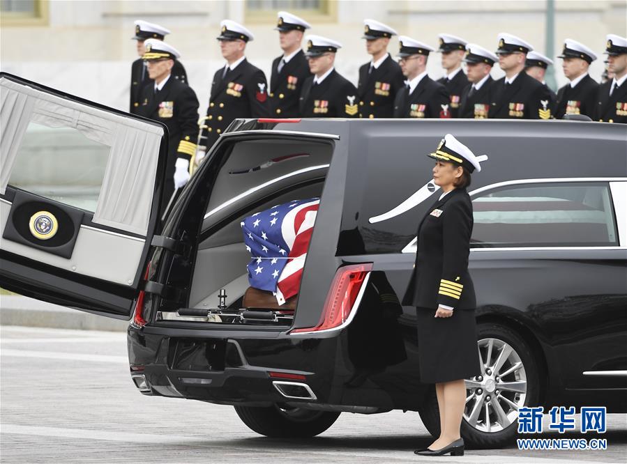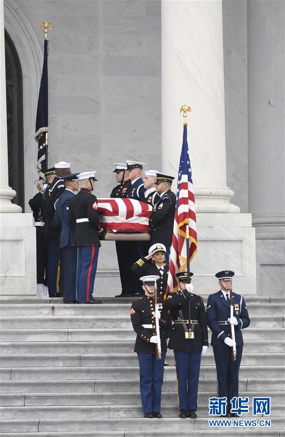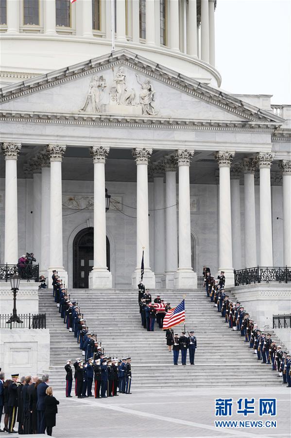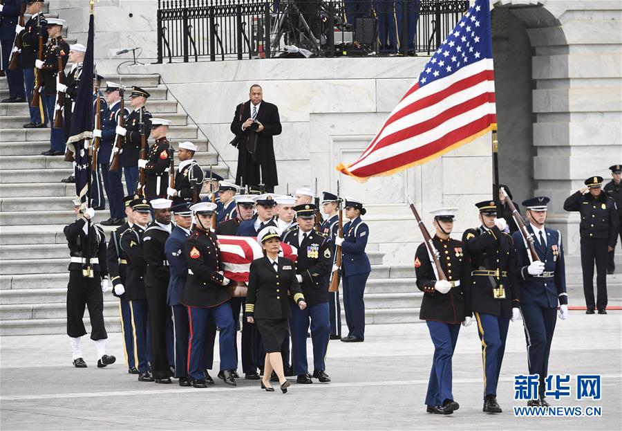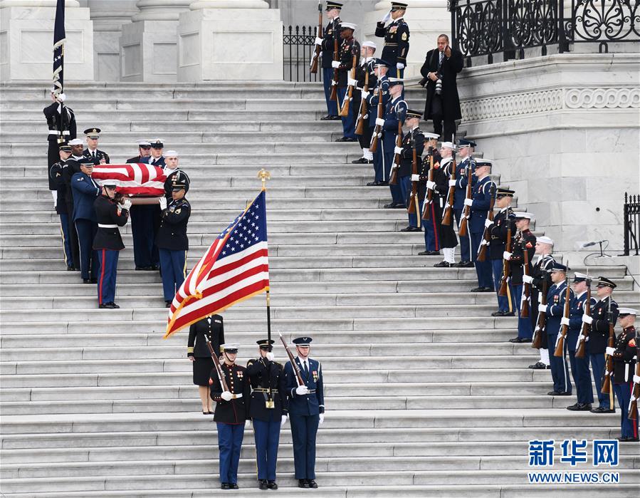 12月3日,在美國首都華盛頓,美國前總統(tǒng)喬治·赫伯特·沃克·布什(老布什)的靈柩抵達(dá)國會大廈。