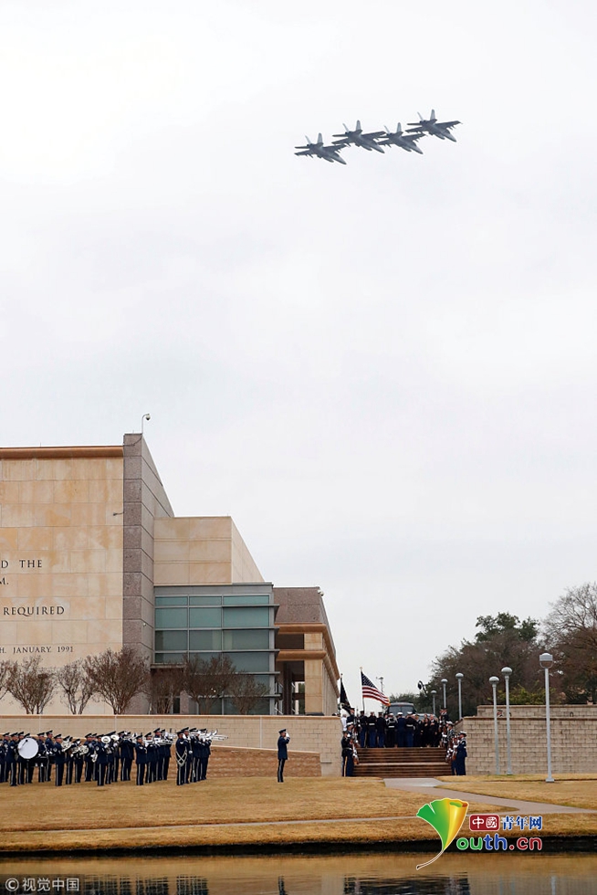 作為在德州舉行的葬禮的一部分,規(guī)模空前的21架F-18戰(zhàn)斗機(jī)以“悼念隊(duì)形”,向前海軍飛行員、第41任總統(tǒng)喬治·H·W·布什致敬。