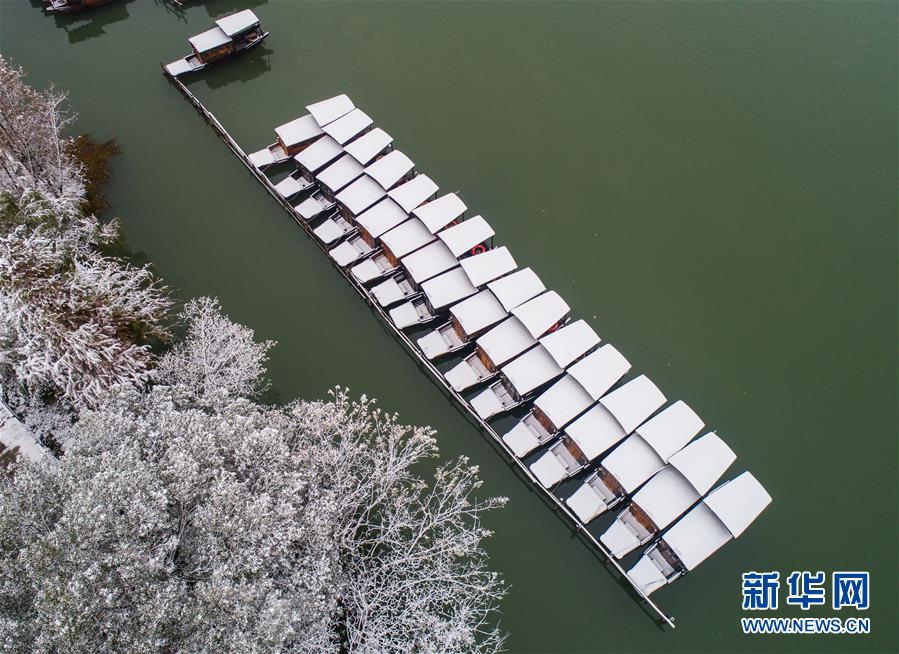 12月9日,空中俯瞰被白雪覆蓋的烏鎮(zhèn)景區(qū)(無人機拍攝)。 受冷空氣影響,浙江省桐鄉(xiāng)市迎來大范圍降雪,千年古鎮(zhèn)烏鎮(zhèn)被厚厚的白雪覆蓋。小橋流水、白墻黑瓦的江南水鄉(xiāng)古鎮(zhèn),呈現(xiàn)出冬日雪鄉(xiāng)的獨特韻味,吸引各地游客前來觀賞。 新華社記者 徐昱 攝