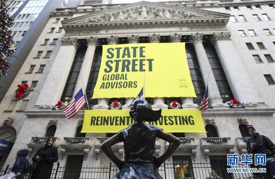 這是12月10日在美國(guó)紐約證券交易所前拍攝的“無畏女孩”銅像。 新華社記者 王迎 攝