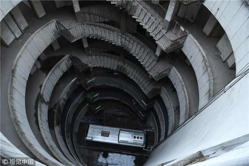 重慶洋人街景區(qū)內(nèi)的穿樓觀光索道吸引不少游客體驗(yàn)。據(jù)悉,跨度長(zhǎng)1000米的觀光索道將隨著洋人街的拆遷而搬離。中新社記者陳超 攝 2017年9月27日,重慶,南岸區(qū)某小區(qū)的“螺旋”停車場(chǎng),從公路到車庫(kù)要下5層樓,司機(jī)需要轉(zhuǎn)無數(shù)個(gè)360度圈。圖片來源:視覺中國(guó)