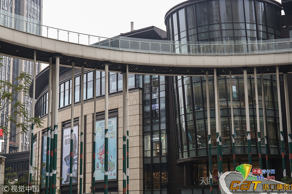 2017年3月16日,重慶,渝中區(qū)一棟大樓從22層架起兩座平行的天橋,連接對(duì)面的魁星樓廣場(chǎng)地面。圖片來源:視覺中國(guó) |