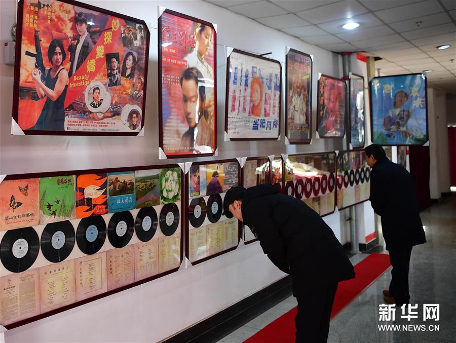 12月12日,觀眾在洛陽隋唐百戲城觀看展出的電影海報(bào)與老唱片。新華社記者馮大鵬攝