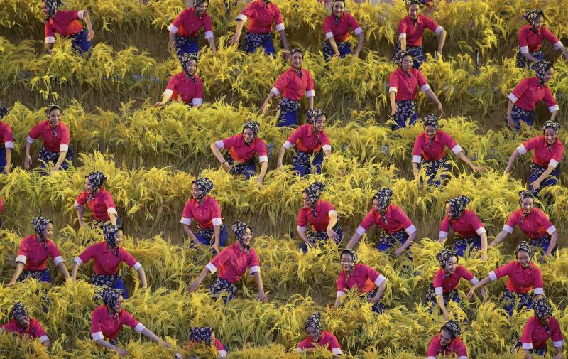 12月14日,慶祝改革開放40周年文藝晚會(huì)《我們的四十年》在北京人民大會(huì)堂舉行。這是節(jié)目《在希望的田野上》。新華社記者 丁海濤 攝