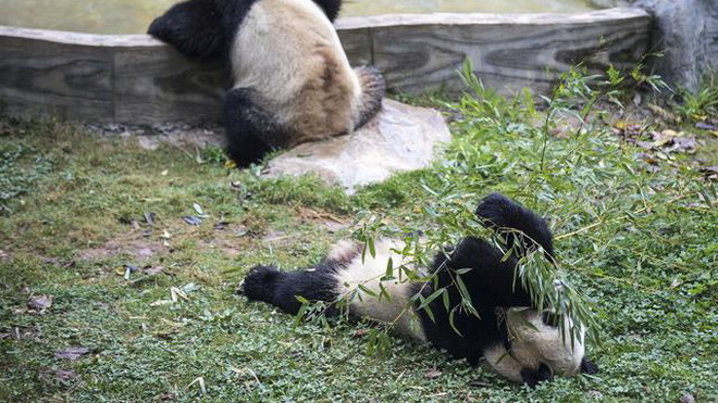 昆明大熊貓:多吃少動(dòng) 美美過冬