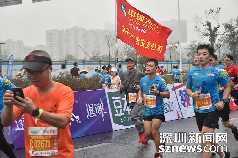 2018年12月16日,深圳國(guó)際馬拉松位于后海的折返點(diǎn),距離終點(diǎn)不遠(yuǎn)處,一位穿著八路軍服裝的選手正在沖刺。