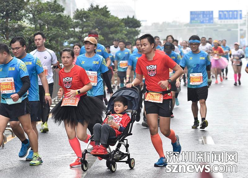 2018年12月16日,深圳國(guó)際馬拉松位于后海的折返點(diǎn),一家三口都參與了本次比賽,正向目標(biāo)沖刺。
