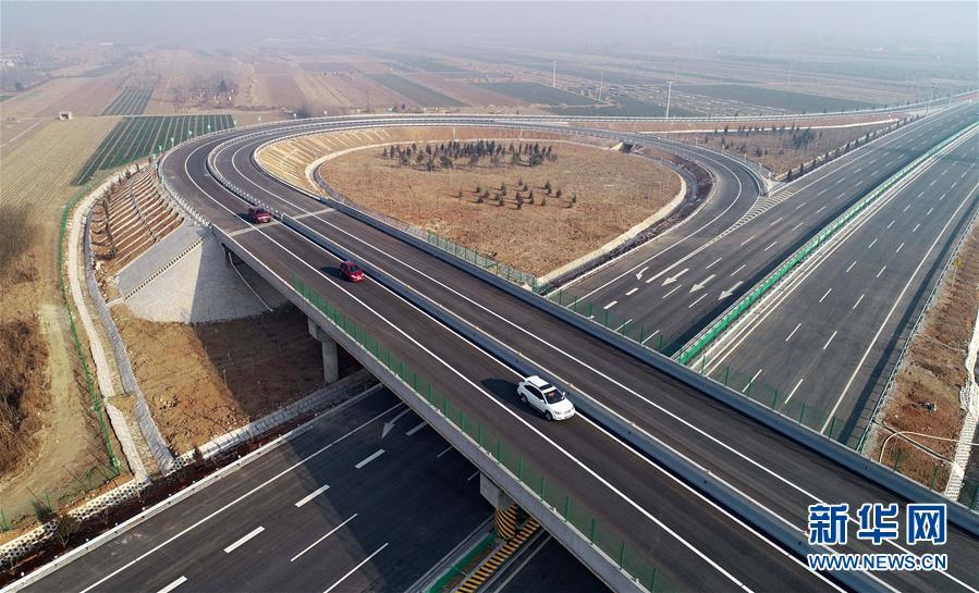 12月16日無人機拍攝的京秦高速公路二期工程河北玉田西進出口處的立交橋。新華社記者楊世堯攝