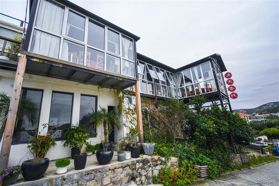 朱家尖烏石塘的“漁夫客?!泵袼蓿?2月15日攝)。 新華社記者 徐昱 攝