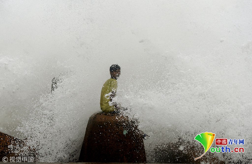 當(dāng)?shù)貢r間2018年12月16日,印度欽奈,颶風(fēng)“佩太”正向印度東海岸逼近,引發(fā)狂風(fēng)巨浪。