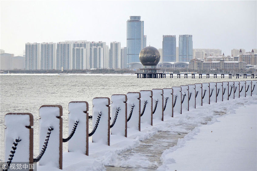 2018年12月7日,山東煙臺(tái),雪后的海濱景色。