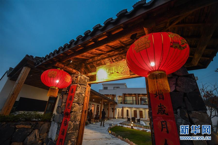 夜色中的民宿“初憶小院”(12月19日攝)。該民宿是河橋鎮(zhèn)“90后”女孩章淑貞開(kāi)辦的,民宿融入了大量的現(xiàn)代建筑設(shè)計(jì)風(fēng)格,深受年輕人的喜愛(ài)。 新華社記者 徐昱 攝