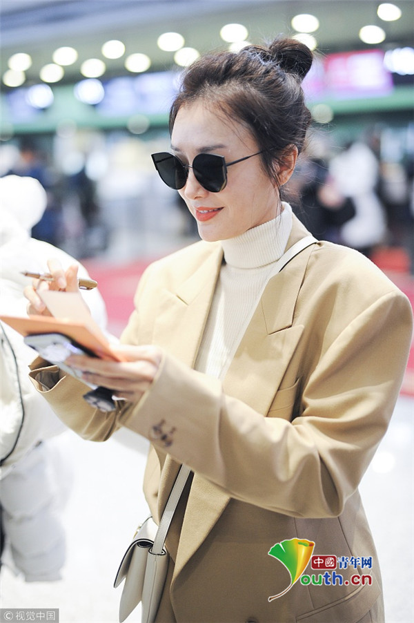 2018年12月11日,上海,秦嵐現(xiàn)身機(jī)場(chǎng)。她穿淺西裝配高領(lǐng)毛衣溫暖又時(shí)尚,梳丸子頭清新減齡,機(jī)場(chǎng)獲粉絲送告白信,嬌羞嘟嘴賣萌少女范十足。
