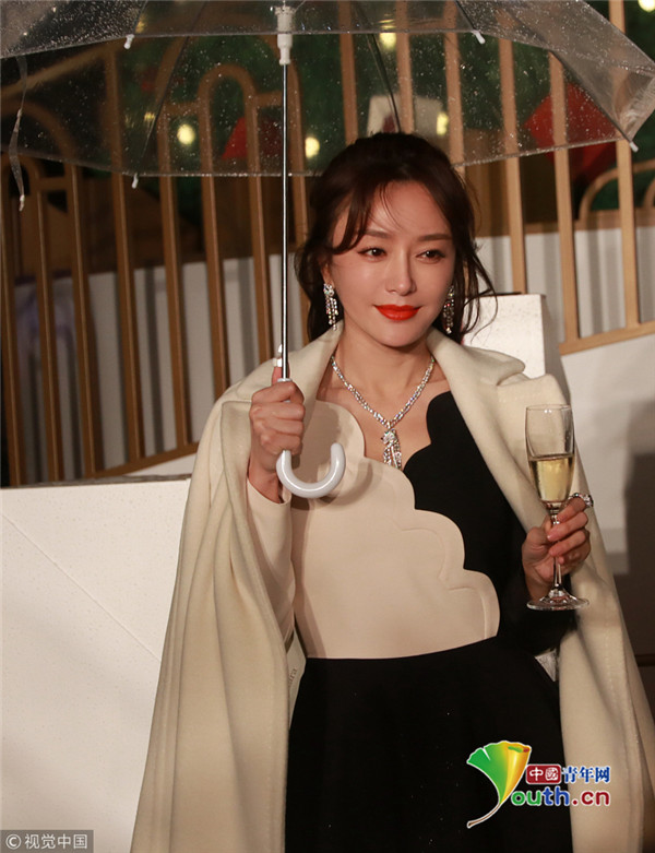 秦嵐撐傘雪膚紅唇美如畫 優(yōu)雅品香檳氣質(zhì)高貴迷人
