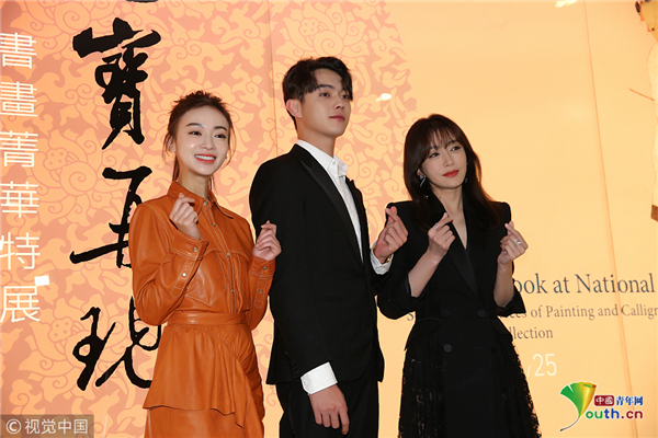 10月31日,臺北,《延禧攻略》主要演員秦嵐、吳謹言、許凱參觀臺北故宮。吳謹言梳高馬尾辮,元氣滿滿比心超甜美。秦嵐穿黑色長裙氣質(zhì)非凡,親切揮手顯優(yōu)雅,可以說是“富察皇后”本人了,與吳謹言牽手秀友誼惹人羨慕。