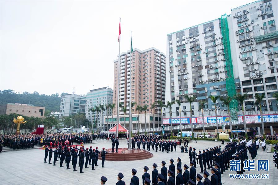 12月20日,澳門特別行政區(qū)政府在澳門金蓮花廣場舉行升旗儀式,慶祝澳門回歸祖國19周年。 新華社記者 張金加 攝