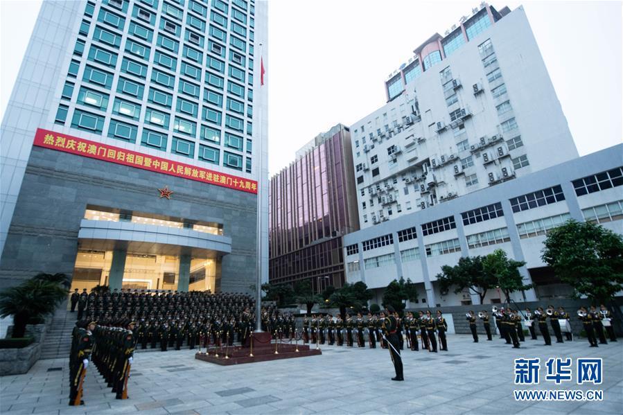 12月20日,中國(guó)人民解放軍駐澳門(mén)部隊(duì)在澳門(mén)新口岸營(yíng)區(qū)舉行升國(guó)旗儀式,慶祝澳門(mén)回歸祖國(guó)暨中國(guó)人民解放軍進(jìn)駐澳門(mén)19周年。 新華社記者張金加攝