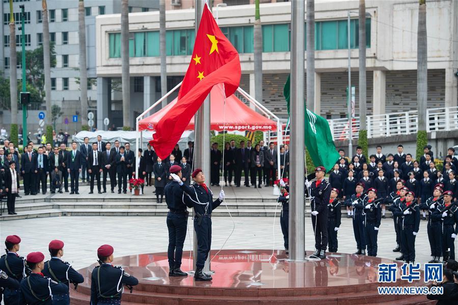 12月20日,澳門(mén)特別行政區(qū)政府在澳門(mén)金蓮花廣場(chǎng)舉行升旗儀式,慶祝澳門(mén)回歸祖國(guó)19周年。 新華社記者 張金加 攝